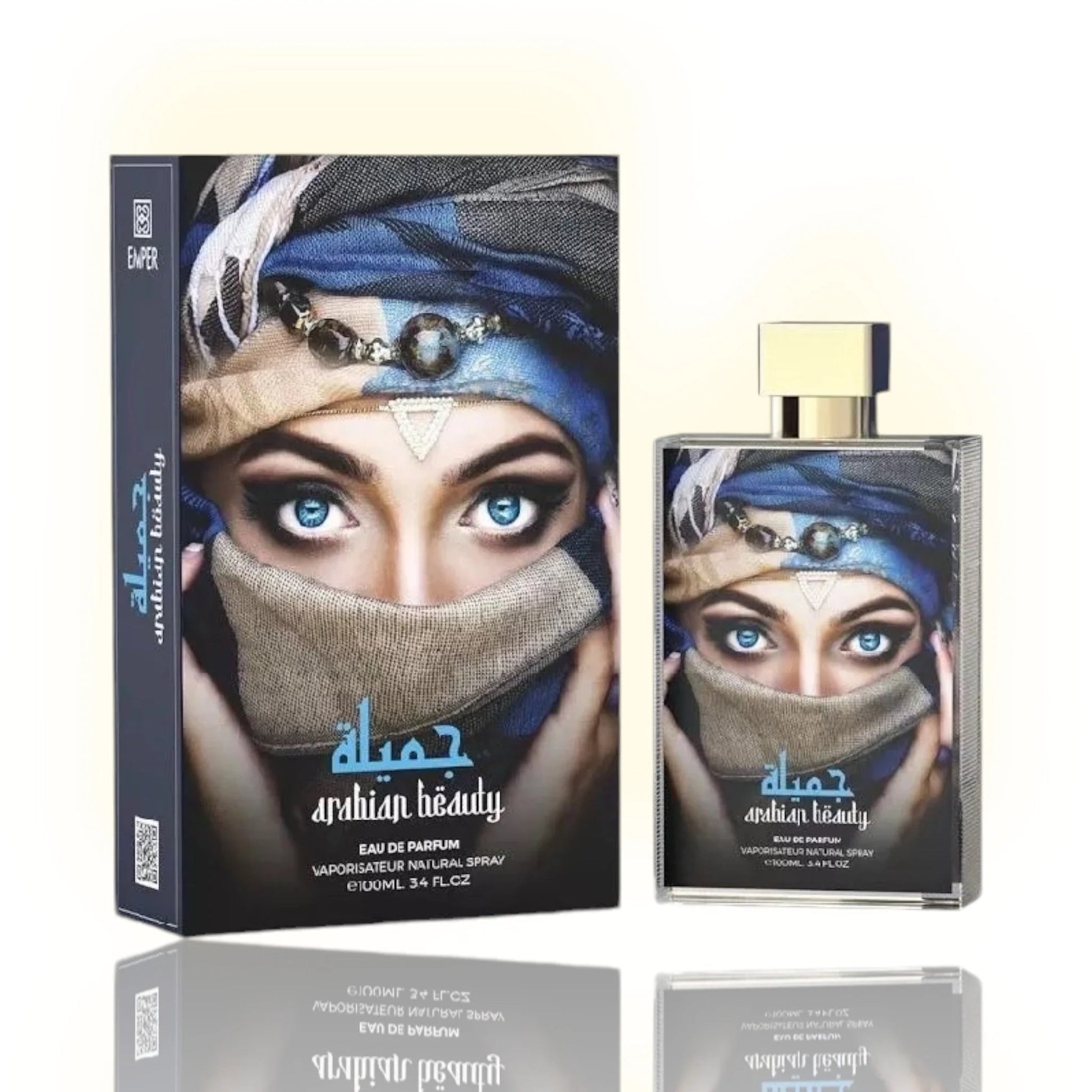 Step into the mystique of the desert with Arabian Beauty by Emper, a fragrance that captivates with its blend of exotic allure and timeless elegance. Inspired by the rich heritage of Arabian culture, this Eau de Parfum celebrates beauty with a sensual and mesmerizing scent that transports you to a world of mystery and enchantment. The design, featuring a woman’s intense, captivating gaze, speaks of hidden beauty and untold secrets, much like the fragrance within.